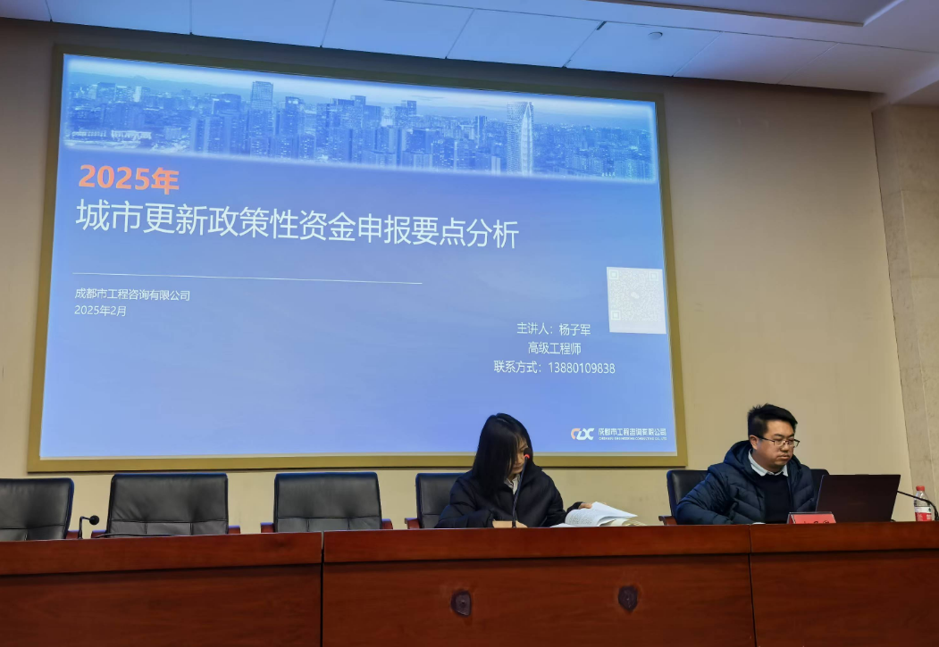 為落實(shí)國(guó)家和省市有關(guān)實(shí)施城市更新行動(dòng)的工作部署,準(zhǔn)確把握城市更新領(lǐng)域超長(zhǎng)期特別國(guó)債、地方政府專項(xiàng)債、中央預(yù)算內(nèi)資金申報(bào)要求,圍繞城市更新八大任務(wù)做好項(xiàng)目包裝、儲(chǔ)備和申報(bào)工作,最大限度承接國(guó)家政策紅利,助力成都市經(jīng)濟(jì)社會(huì)高質(zhì)量發(fā)展,2月13日,成咨公司受成都市住建局邀請(qǐng)開(kāi)展2025年城市更新政策性資金申報(bào)專題培訓(xùn),市住建局、各區(qū)(市)縣住建局和城市更新工作具體實(shí)施單位相關(guān)工作人員共計(jì)100余人參加本次培訓(xùn),本次培訓(xùn)會(huì)得到了參會(huì)單位的高度認(rèn)可。公司黨支部書(shū)記、執(zhí)行董事、總經(jīng)理陳崎虎及公司城市有機(jī)更新項(xiàng)目組參與培訓(xùn)。